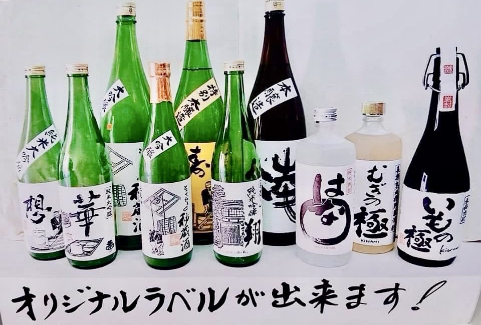 We mainly sell sake and shochu from Chikugo, a region known for its fine local sake. We carry a wide selection of original sake and shochu available only at our shop. We can also create original labels starting from a single bottle. We host “Sake Enjoyment Gatherings” that connect local sake with people and the community.