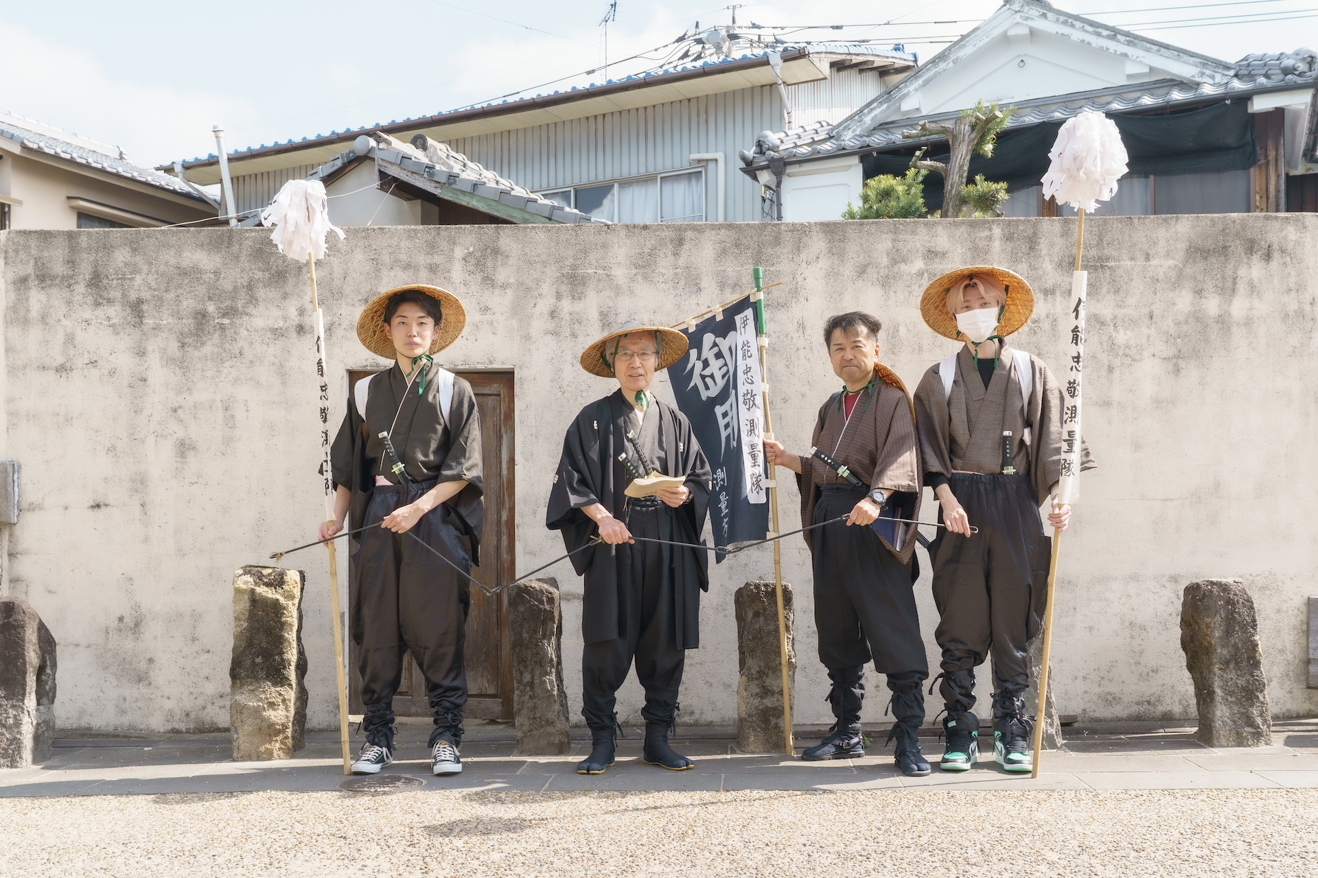 일본에서 처음으로 일본 지도를 만들었다고 일컬어지는 이노 다다타카. 그는 50세에 은거한 후 천문학과 측량학을 배우고 전국 각지를 돌아다니며 지도를 완성했습니다. 여기 번경의 마을도 그의 「측량 일기」에 방문한 기록이 남아 있습니다. 번경 축제에서는 이노 다다타카 측량단이 등장합니다.