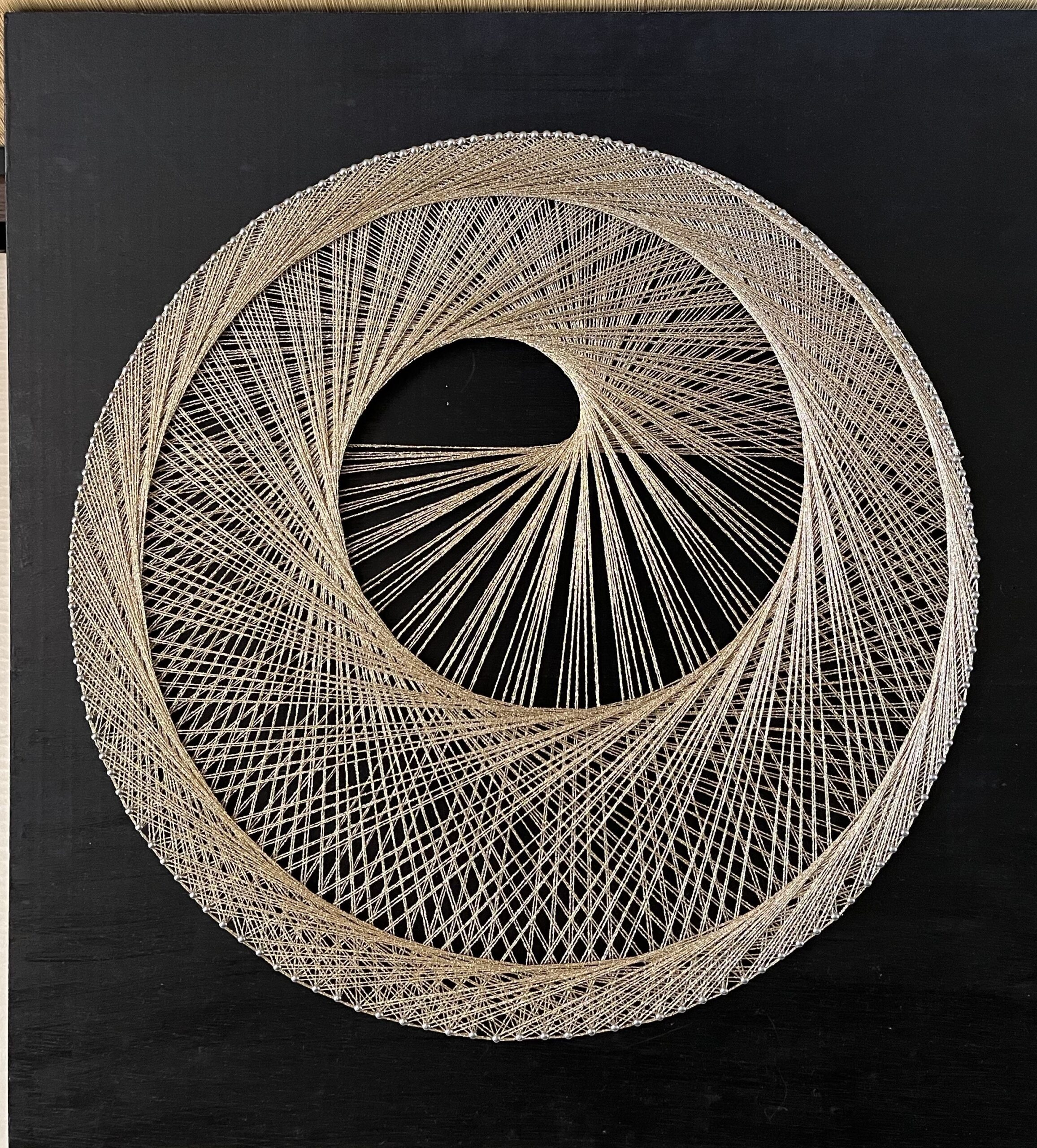小さな釘に糸をかけることで点から線、線から面へと変化していく