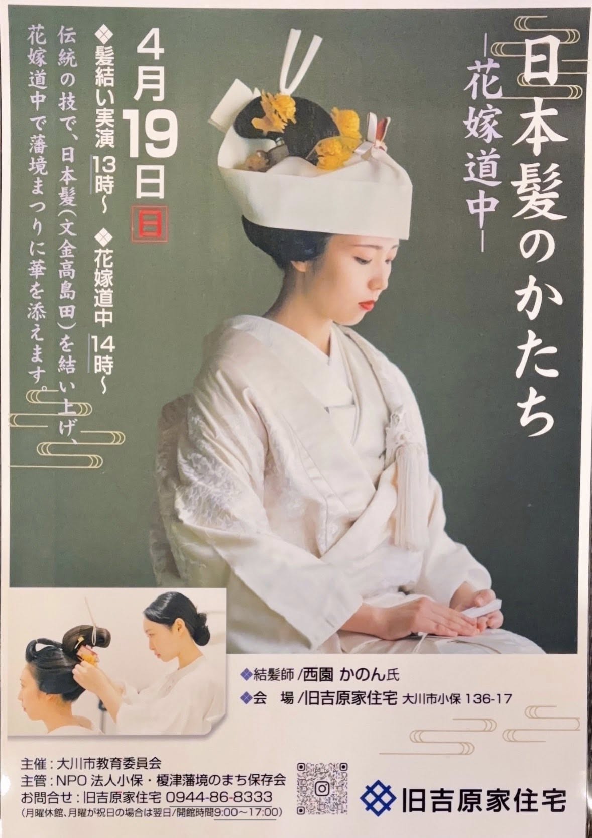 2025年に行われた 旧吉原家住宅の「日本髪のカタチ」の花魁道中 2026年は花嫁道中 の予定
